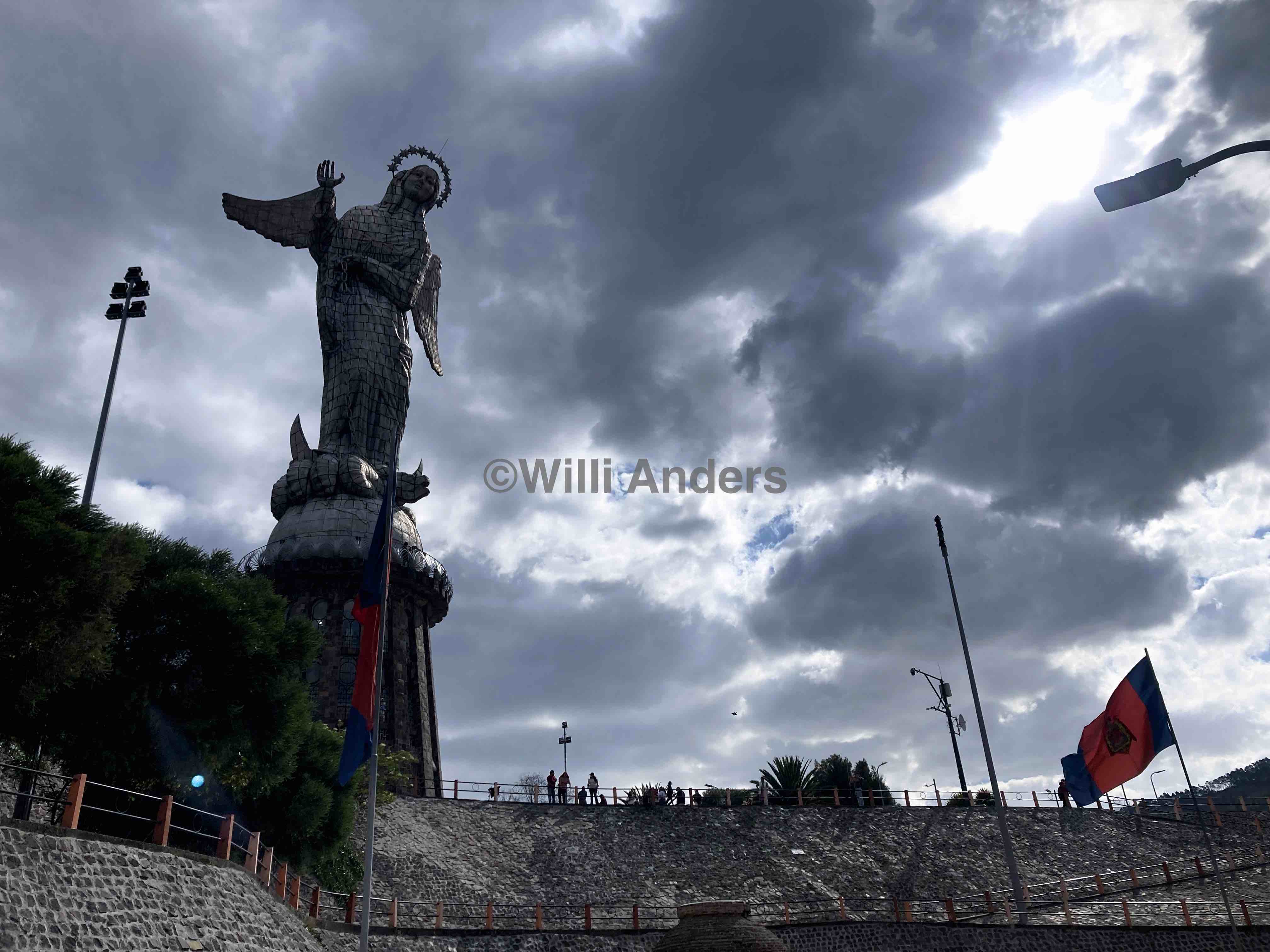 Allerdings war der Spanischunterricht nicht den gesamten Tag über, es waren immer vier Stunden und der Rest dann Freizeit. Die habe ich genutzt, um an einem Nachmittag mit meinem Mitfreiwilligen Tom zur "Virgen del Panecillo" zu düsen. Das ist die hiesige Statue der Jungfrau Maria, vielleicht vergleichbar mit der bekannten Christusstatue in Rio de Janeiro. Dieses Monument hier in Quito befindet sich jedenfalls auf einem Hügel (ja, in Anbetracht der umliegenden tatsächlichen Berge wie Pichincha und weitere, kann ich bei diesem für den durchschnittlichen Norddeutschen klar als Gebirge definierten Erdhaufen wirklich nur von "Hügel" sprechen) und von dort aus bietet sich eine phänomenale Aussicht über die gesamte Stadt. Es ist einfach nur ein unglaubliches Panorama: umringt von Quitos Straßen und Häusern, ein wenig entfernt noch die Skyline der Hochhäuser aber das alles dennoch eingekesselt von den Anden. Und gleichzeitig ist Quito als Stadt so länglich, dass selbst der Horizont noch Häuser zeigt. Es ist beeindruckend. Ursprünglich hatten wir übrigens geplant, den Weg hoch zur Statue zu Fuß zurückzulegen, davon wurde uns aber dringend abgeraten sofern wir zumindest nicht ausgeraubt werden wollten. Und überraschenderweise hatten wir darauf tatsächlich eher weniger Lust, weswegen wir uns ein Taxi genommen haben. Das klingt erstmal nach klassisch "wohlstandsverwahrloster Europäer" und das ist es vermutlich auch irgendwie. Andererseits sind Taxis und Fortbewegungsmittel im Allgemeinen hier brutal günstig und so kann ich vollen Ernstes sagen: das waren die bestinvestierten $2.21 unseres Lebens!