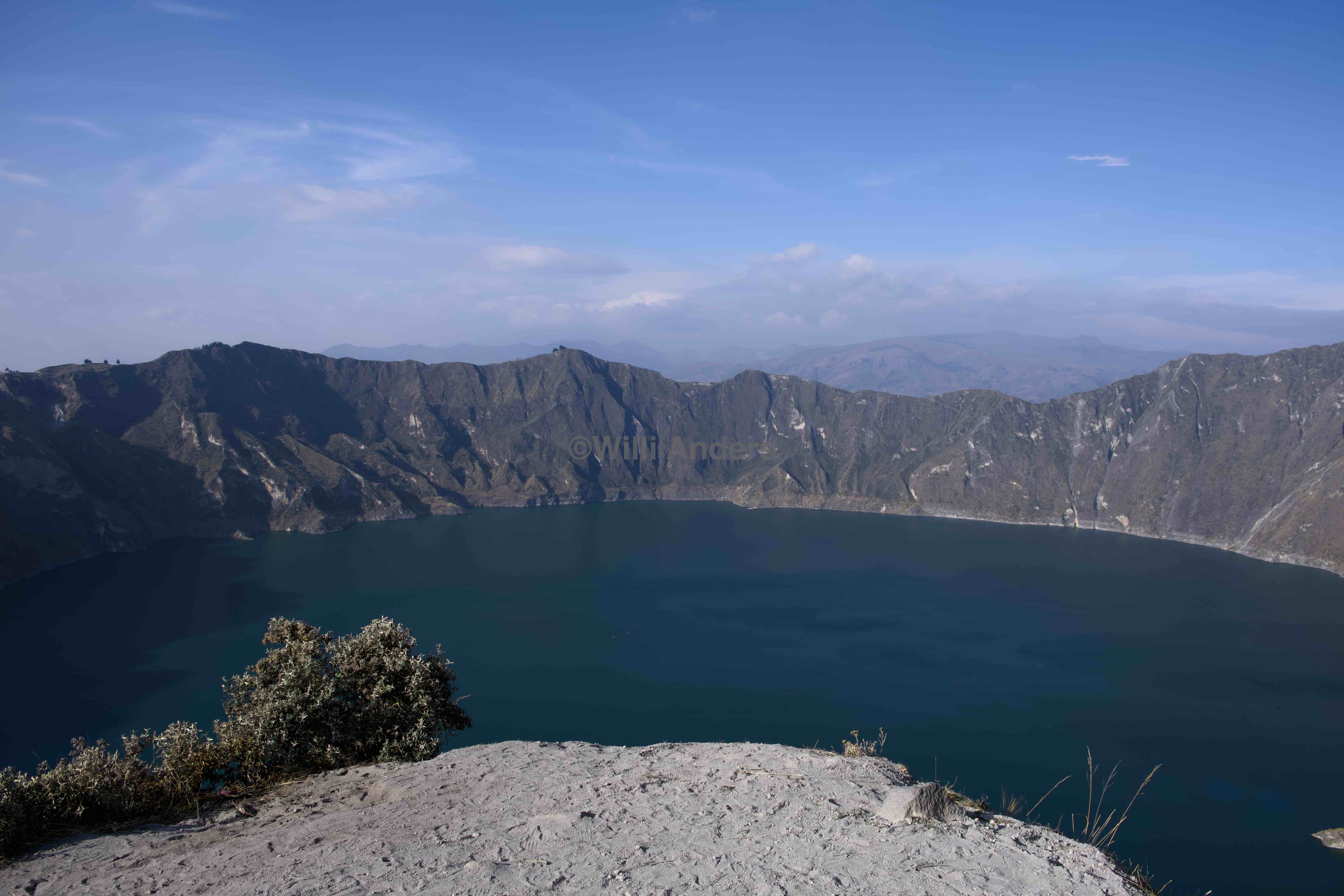 Weiter ging es anschließend dann wieder mit dem Bus und zwar in Form einer ca. dreistündigen Fahrt in Richtung Quilotoa, während derer ich mich sehr gut mit meinen ecuadorianischen Mitfahrern unterhalten habe mit manchen bin ich jetzt sogar befreundet, in gewisser Weise. Die Reise ging jedenfalls durch Täler und über Berge und war insgesamt recht kurvig aber mit bombastischer Aussicht. Und auch der Quilotoa war mal wieder, ich weiß einfach nur spektakulär. Es handelt sich bei selbigem nämlich um einen Vulkankrater mit riesigem See innendrin und der Möglichkeit, in ebendiesen Krater runterzusteigen um direkt am Wasser zu stehen. Und ich weiß zwar nicht, ob der Quilotoa tatsächlich das beeindruckendste Naturspektakel ist, dass ich je gesehen habe aber es ist auf jeden Fall ganz oben auf der Liste dabei. Natürlich haben wir uns die Möglichkeit auch nicht nehmen lassen, in den Krater hinabzusteigen und damit gleichzeitig auch die Speicherkarte meiner Kamera an ihre Grenzen zu bringen. Und der Abstieg war, wenn auch sehr steil, vollkommen in Ordnung. Der Aufstieg hingegen uff. Weil: steil. Wir waren ziemlich außer Atem und ich hätte gerne meine Beine durch neue und frische ausgetauscht, als wir oben angekommen sind. Gelohnt hat es sich aber definitiv. Und nach der anschließenden dreieinhalbstündigen Busfahrt zurück nach Hause, waren wir um 23:30 Uhr auch endlich im Bett.