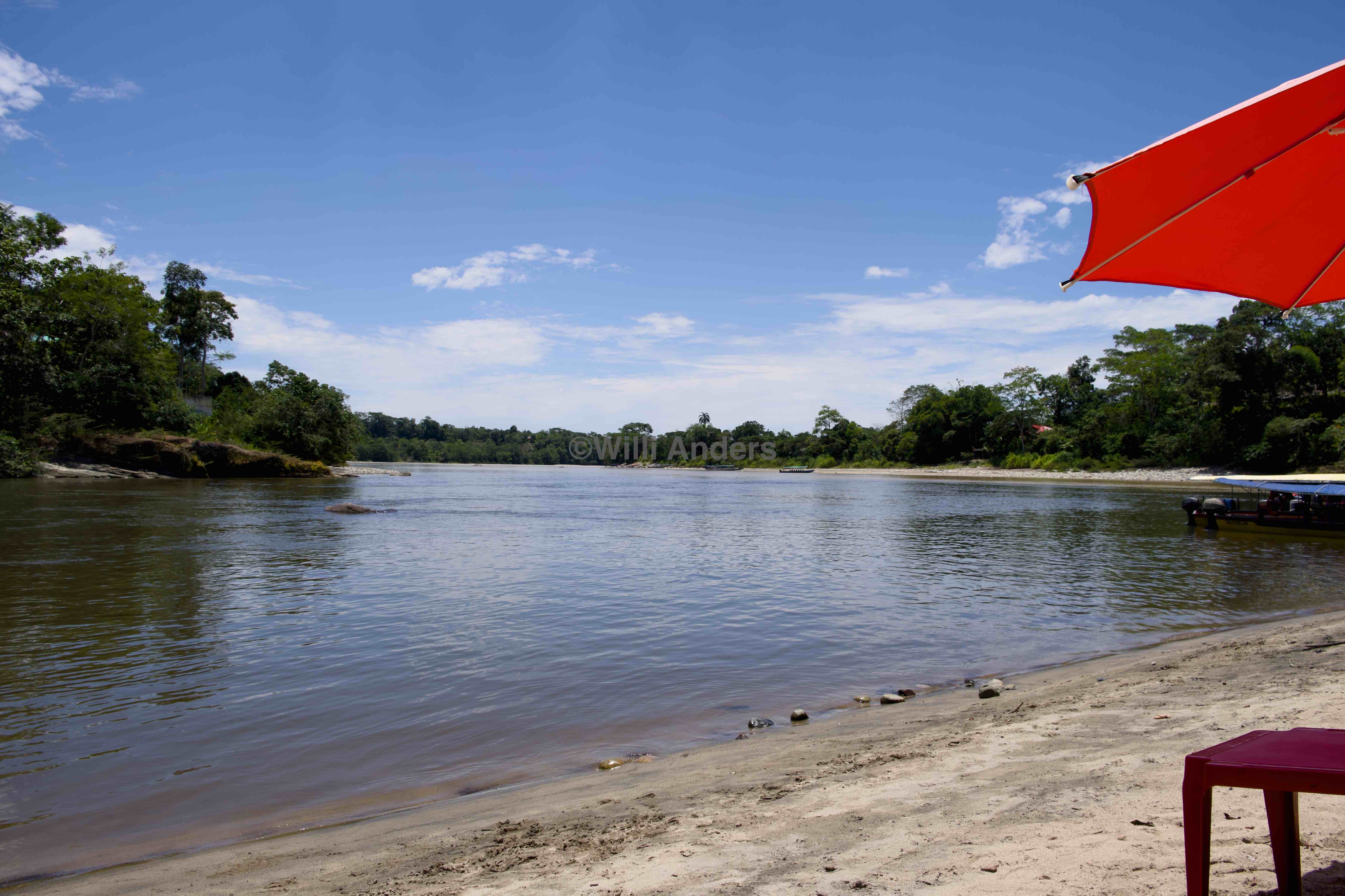 Aber weiter mit meinen Wochenerlebnissen. Die enden tatsächlich wieder am Samstag, bevor dieser Blog hier online geht und zwar in Puerto Misahualli. Das ist ein kleiner Ort am Rio Napo (ein großer Amazonaszufluss) mit Strand und bekannt für seine Affen. Selbige haben wir auch gesehen, als wir nach einer Stunde Fahrt in entspannten 32 Grad Celsius dort angekommen sind. Und die waren auch ganz lustig, aber leider ist der gesamte Ort ziemlich touristisch und ich sage es mal so: die Affen haben gelernt, wie sie sich verhalten müssen, damit sie Essen bekommen. Die haben da eine Show nur für uns Touris abgezogen, so hat's sich angefühlt. Aber naja. Sonst zu erwähnen ist noch nicht viel, eigentlich. Abgesehen von dem bereits Berichteten gibt Misahualli nämlich nicht viel her. So sind wir einfach durch den Ort geschlendert, hier ein bisschen was gegessen und dort mal ins Wasser gehüpft. Schließlich ging es dann noch mit dem Boot rüber zu einer von Frauen geführten Community Misahuallis, die wir uns anschauen wollten. Eigentlich nur das Gelände, allerdings haben wir versehentlich den nicht notwendigen Eintritt bezahlt, der einem im Prinzip die Erlaubnis gibt, direkt bei einer indigenen Tanzvorführung dabei zu sein. Das war keine Absicht, denn ich muss ganz ehrlich sagen: es ist aber mal so ÜBERHAUPT NICHT mein Ding, dafür zu bezahlen oder es mir auch einfach so anzuschauen, wie andere Menschen ihre Traditionen vortanzen oder so etwas in der Art. Es fühlt sich an wie im Zoo und damit komme ich einfach nicht klar. Auch wenn die Show an sich nett und lustig war, keine Frage. Wir haben einen Tee bekommen, fancy Gesichtsbemalung und mussten sogar mittanzen. Aber es fühlt sich für mich einfach falsch an, bei so etwas teilzunehmen. Ganz schwierig zu beschreiben. Wobei natürlich auch klar ist, dass diese Vermarktung der eigenen Kultur teilweise die einzige Möglichkeit dieser Menschen ist, ihre Traditionen und Lebensweisen mit finanziellen Mitteln aufrechtzuerhalten. Naja Letztendlich war es ganz nett und wir wurden danach auch noch über das Gelände geführt, wirklich wohl gefühlt habe ich mich zumindest bei dieser Show aber wie gesagt nicht.