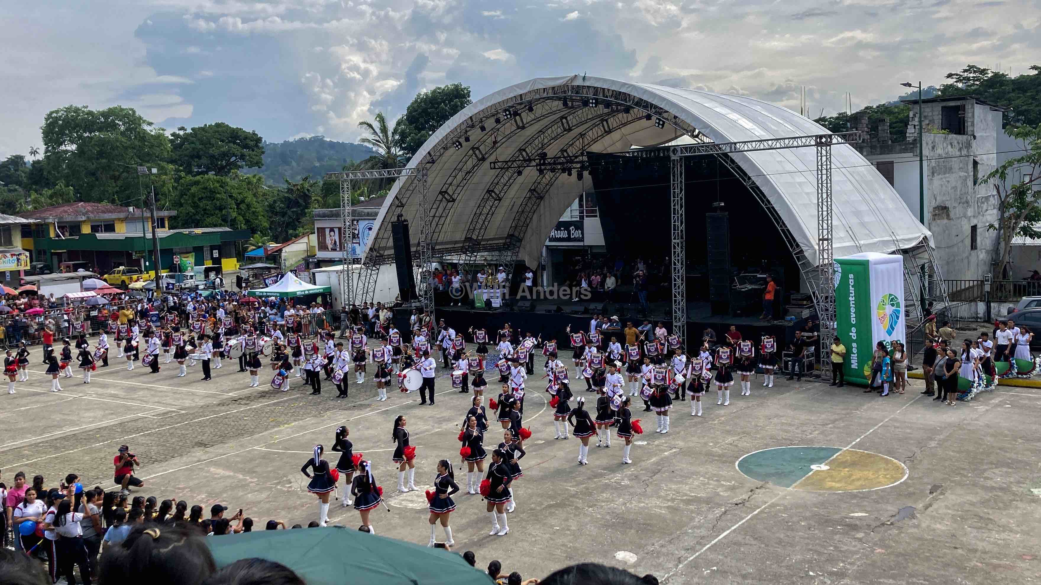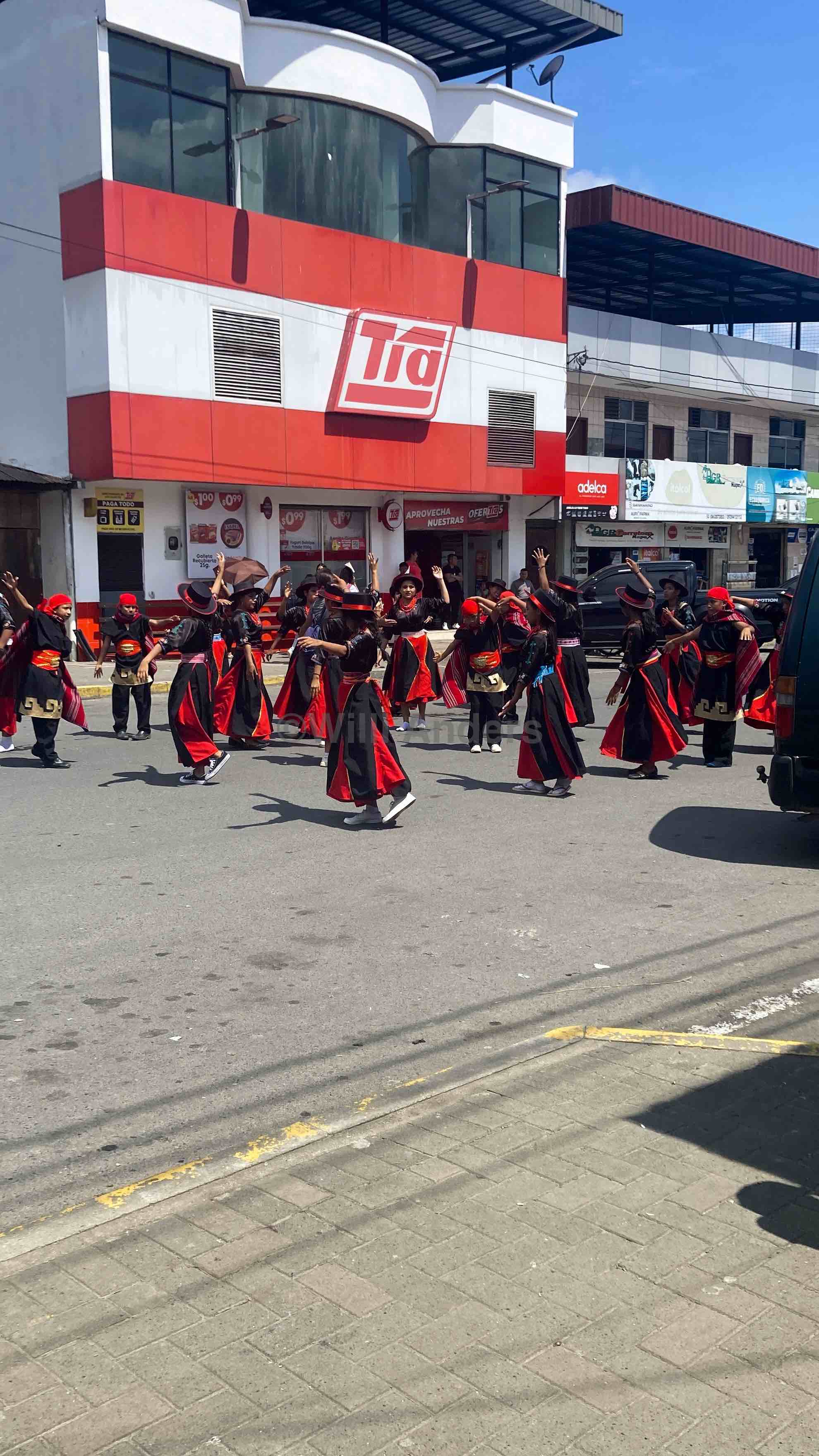 Was mit der erwähnten Fröhlichkeit einhergeht bzw. vielleicht auch ein Grund dafür ist: die ganzen Fiestas und Paraden, die es gefühlt täglich gibt. Für so ziemlich ALLES gibt es irgendeinen Feiertag seien es Fiestas vom Kanton Tena, der Stadt Archidona oder der Gemeinde San Pablo mit ca. 500 Einwohnern. Dazu der Tag der Vokale, Dia de los Difuntos (Tag der Verstorbenen), der Tag vom Schutzpatron Jumandy oder natürlich auch massenhaft Schulfeste. Und wie das so ist, gehört natürlich zu jedem größeren Feiertag auch eine fette Parade durch die ganze Stadt, bei der kostümierte Schüler tanzend über die Hauptstraße marschieren. Ich verstehe immer noch nicht, wie die das machen 30 Grad, pralle Sonne und dann so eine Performance?! Ich bin ja schon eingegangen, als ich unter einem Sonnenschirm einfach nur mitgelaufen bin! Wie dem auch sei: solche Festlichkeiten waren immer sehr spannend und beeindruckend. Und auch, wenn der Lärm bis spät in die Nacht mich teilweise ziemlich fertig gemacht hat, ist es doch ganz nett gewesen, wenn ich selber bei einer entsprechenden Fiesta dabei war. Und ja, auch die Wayuza-Upinas, bei denen mir im Zuge einer indigenen Zeremonie um 05:00 Uhr morgens Chilisaft zur Seelenreinigung in die Augen gekippt wurde, vermisse ich doch ein wenig.