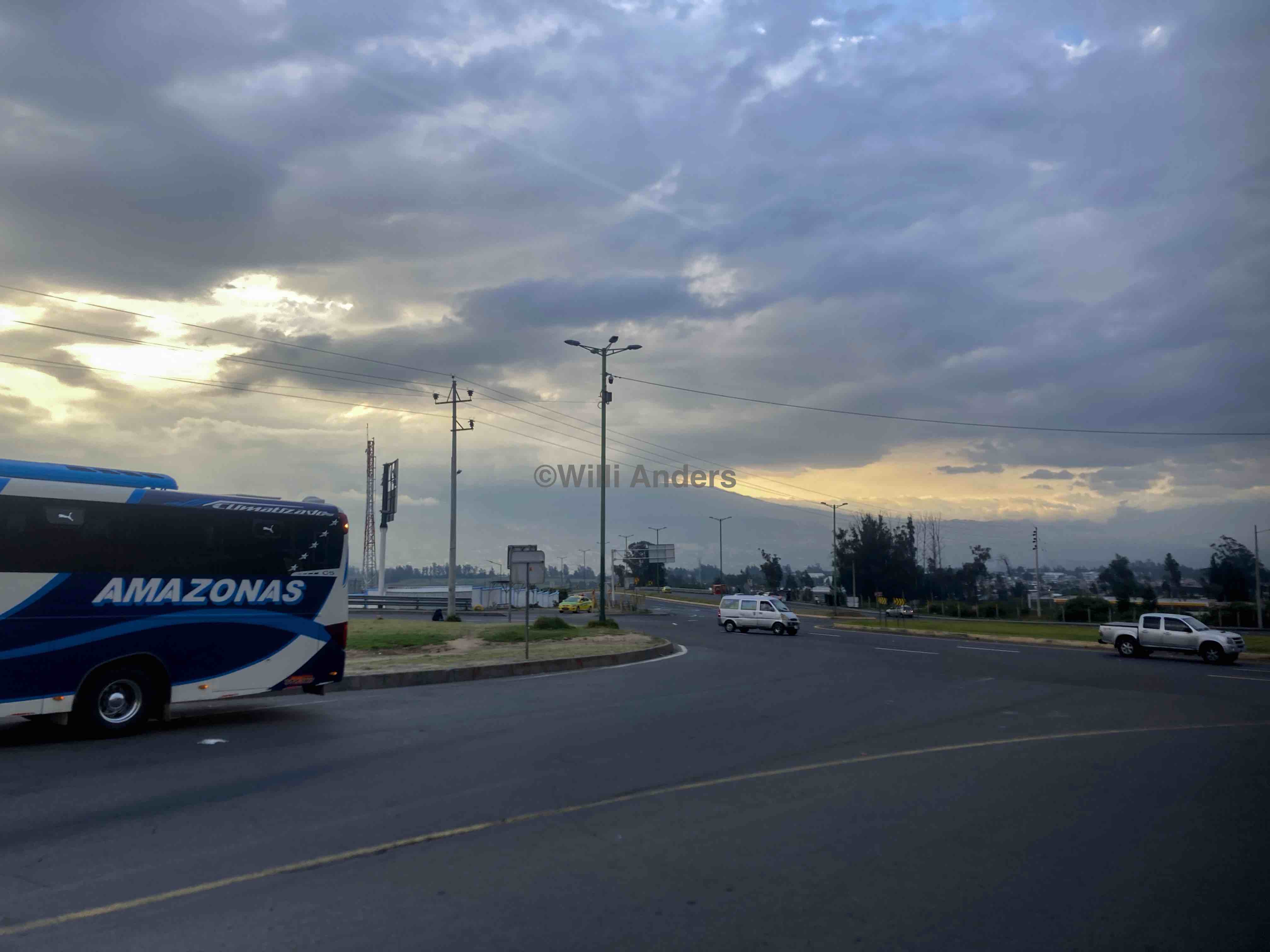 Joa ich halte mich kurz: im Flugzeug zu schlafen find ich eher so semi-toll und auch das Essen war nur naja. Aber wie auch immer, wir sind dann die elf Stunden später um 05:40 Uhr in Quito gelandet. Dem geübten Mathematikerblick wird dabei eventuell direkt auffallen, dass diese Zeitrechnung nicht ganz aufgeht und dem möchte ich sofort die sieben-stündige Zeitverschiebung zwischen Madrid bzw. auch deutscher Zeit und Ecuador entgegensetzen. Ha!