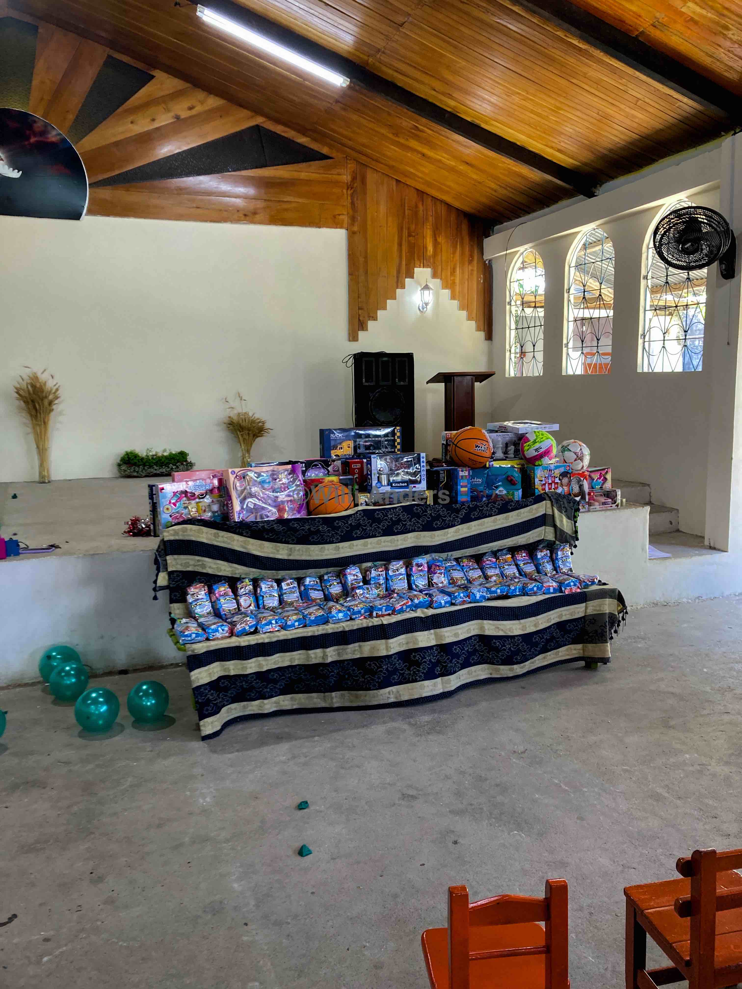 Aber wo ich grade schon bei meiner Gastfamilie bin: eventuell habe ich bereits erwähnt, dass mein Gastvater hier im Ort wirklich JEDEN kennt. Egal, worauf wir ihn ansprechen und worum es geht, immer heißt es: "Achso klar, ja da arbeitet ja auch ein guter Freund von mir!". Und sobald wir im Auto durchs Dorf unterwegs sind grüßt er an jeder zweiten Ecke irgendjemanden aus dem Fenster raus es ist unglaublich. Aber entweder liegt der Grund für seine Popularität in Folgendem, oder aber das Projekt konnte nur seiner Bekanntheit wegen umgesetzt werden: mein Gastvater ist nämlich Präsident einer der hiesigen Kirchen. Kein Pastor oder Priester, aber eben Präsident dieses Gotteshauses, das vor ca. 2 Jahren entstanden oder renoviert worden sein muss. Jetzt bin ich zwar nicht gläubig, aber nachdem wir an unserem ersten Sonntag einmal dorthin zwangsverschleppt wurden, um der Gemeinde vorgestellt zu werden (die Kirche hängt mit einer der Schulen zusammen, an der ich arbeite), habe ich mich dazu entschlossen, jetzt einfach mal regelmäßig dort aufzutauchen und so gehe ich neuerdings jeden Sonntag mit meinem Gastvater und meinem Gastbruder zum Gottesdienst.