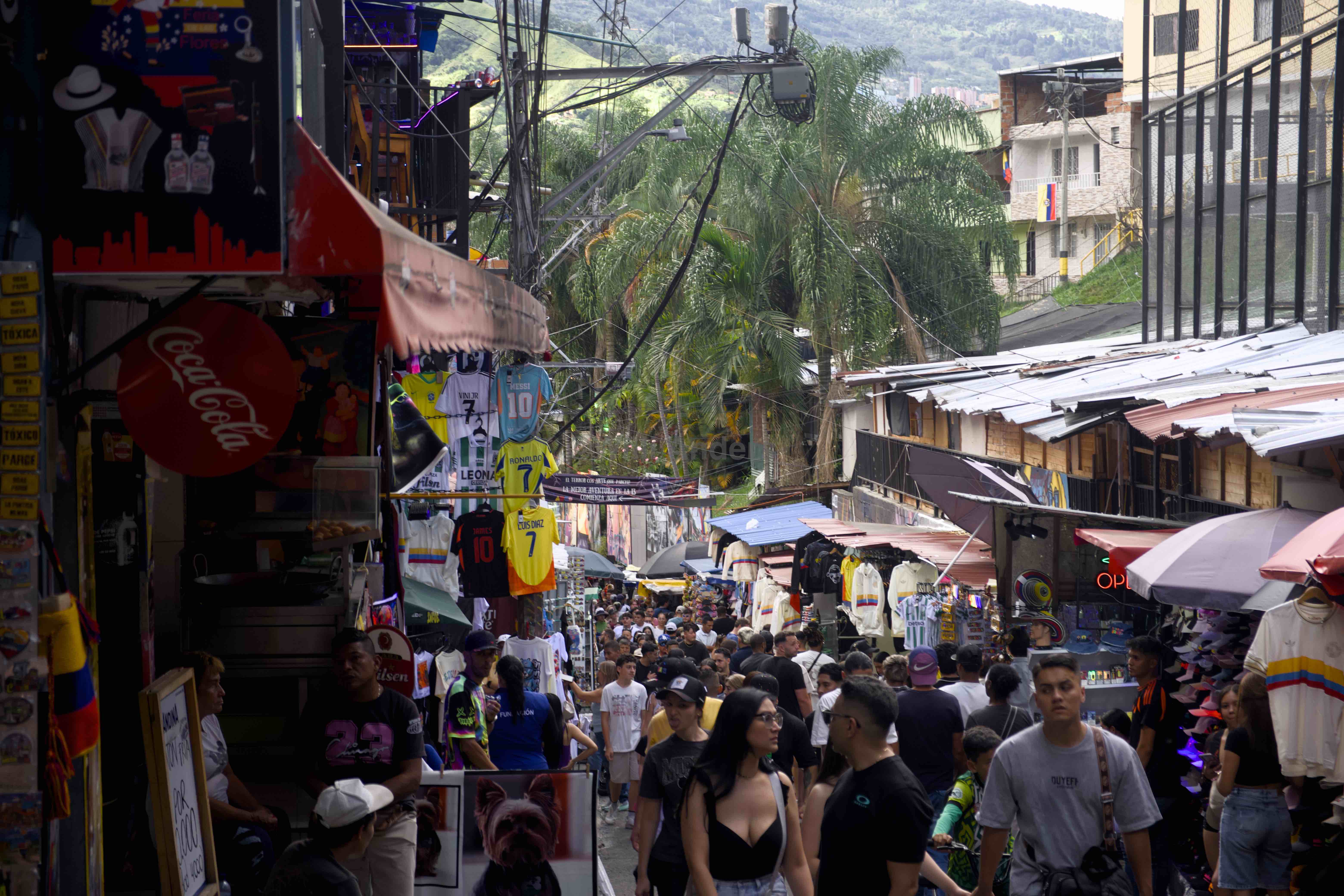 An einem der nächsten Tage ging es für uns dann auf eine Tour durch die Comuna 13. Das ist eines von den Vierteln hier in Medellín, die wohl den heftigsten Wandel durchgemacht haben. Einst ein Ort der Angst und der Kriminalität ist Comuna 13 heute ein absolutes Szeneviertel und ziemlich touristisch. Und weil wir uns in grenzenloser Dummheit dazu entschieden haben, unsere Führung an einem Sonntag und gleichzeitig noch dem Unabhängigkeitstag Kolumbiens zu machen, war es außerdem ganz schön voll und anstrengend.
