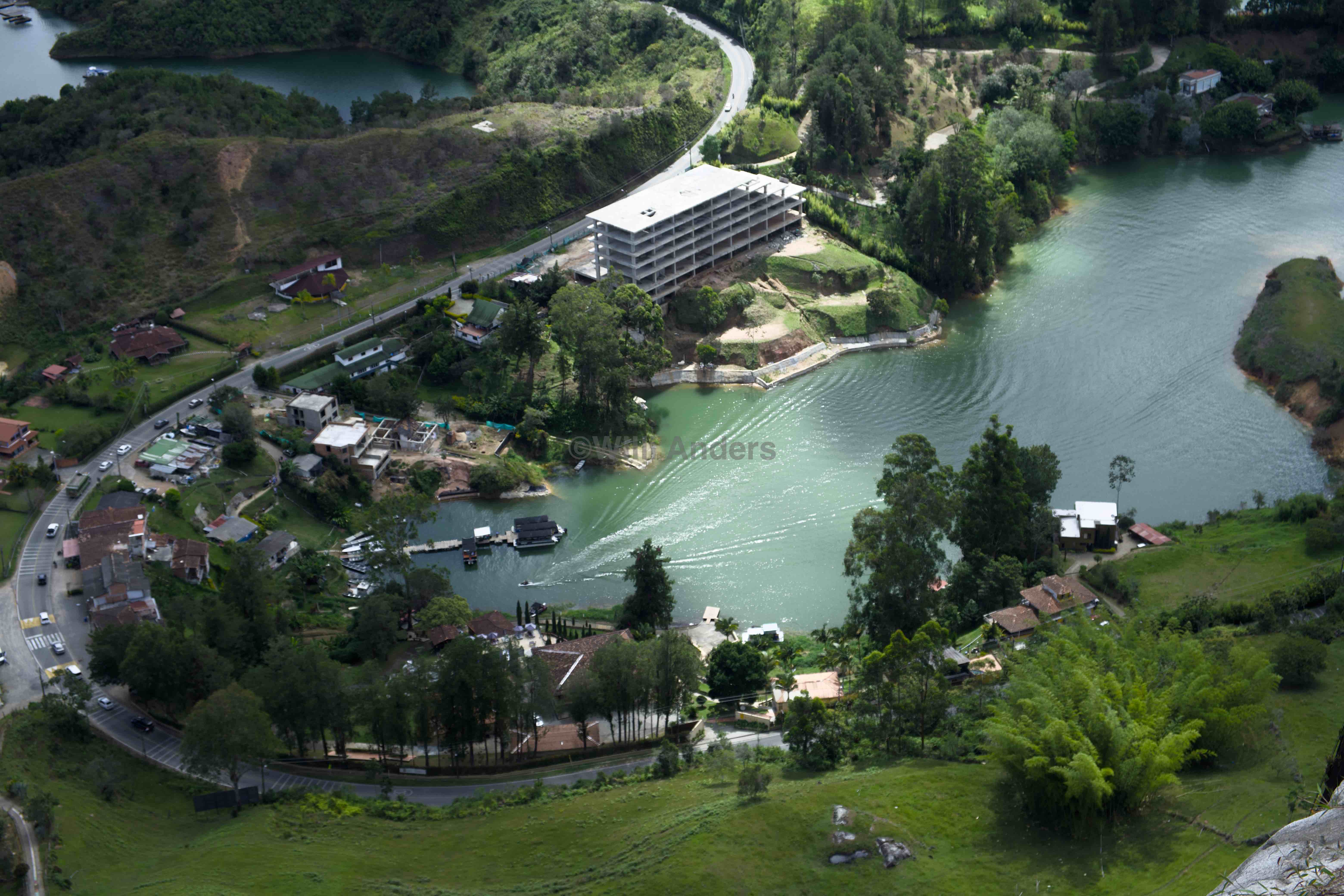 Was jedenfalls genervt hat, waren die ganzen Hubschrauber, die um den Berg rumgeflogen sind und für ordentlich Lärm gesorgt haben. Ich meine, ich kann ja verstehen, dass man solche Attraktionen touristisch ausschlachten möchte aber irgendwann ist auch mal gut. Seit ca. 3 Jahre werden offenbar diese Rundflüge im Helikopter angeboten und auch, wenn sich dabei sicherlich ein toller Blick bietet, ist das ja für alle Anwohner einfach brutal nervig und außerdem ziemlich beschissen für das Klima. Schon irgendwo schade, dass es so etwas gibt Insgesamt ist die Piedra del Peñol ziemlich touristisch. Das ist zwar einerseits sehr nachvollziehbar andererseits aber auch echt nervig. Vor allem, weil ein großer Teil der Besucher erstens offenbar absolut unsportlich und zweitens irgendwie auch ganz schön dumm oder ignorant ist: der Aufstieg mit den Treppen war an sich wirklich nicht schwierig, aber dass sich überall irgendwelche Deppen (und in diesem Fall vor allem DeppINNEN) mitten auf dem Weg zur Pause breit gemacht haben, ist schon echt anstrengend gewesen.