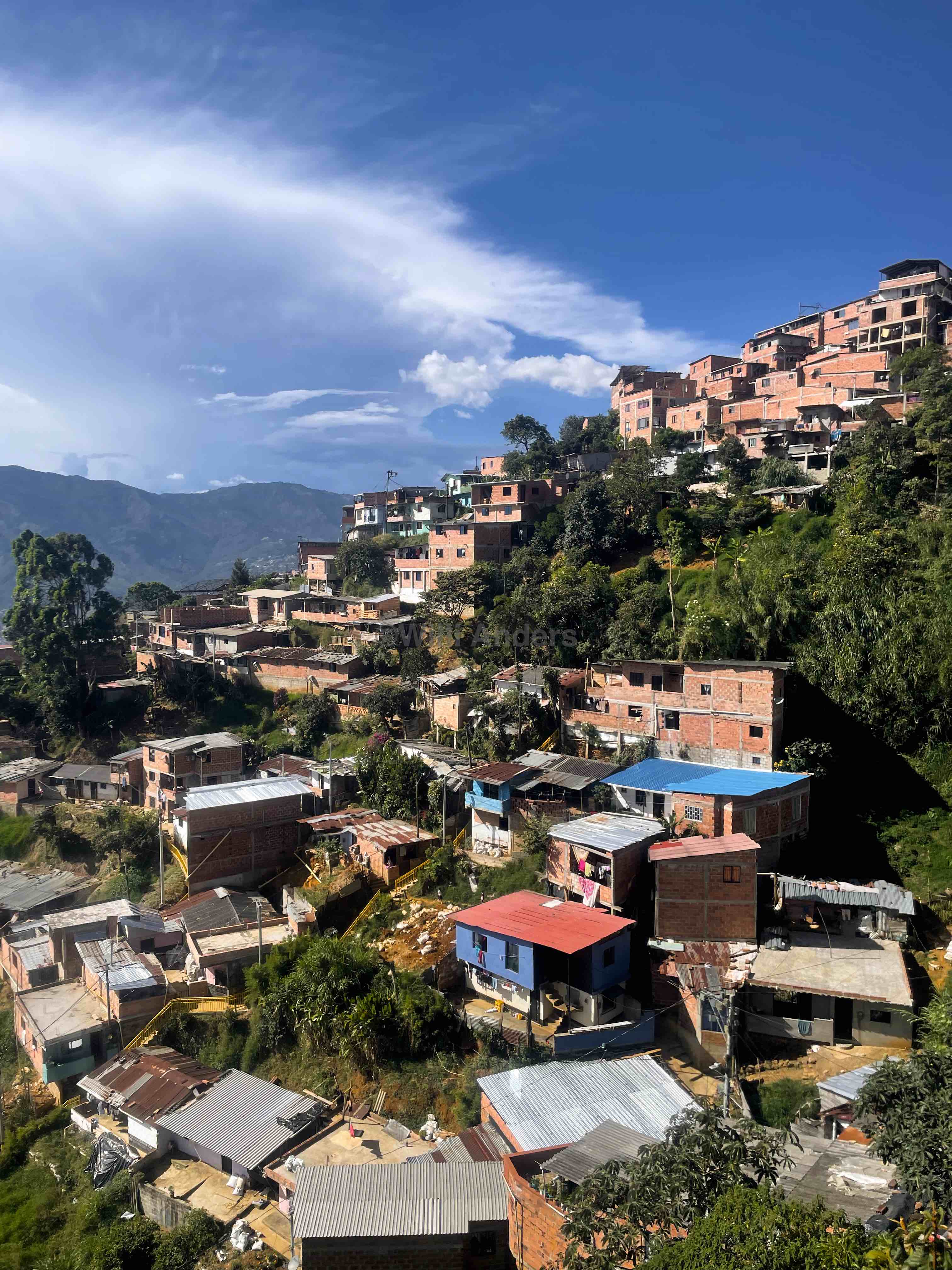 Und auch, nachdem all das mehr oder weniger ein Ende gefunden hatte, war die Comuna 13 immer noch kein leichter Ort zum Leben. Zwar ist es seit einigen Jahren dort wieder sehr sicher, allerdings liegt dieses Viertel wie die allermeisten Teile Medellíns deutlich höher als das Zentrum und ist entsprechend nur zu Fuß erreichbar, das Metrocable fährt dort nicht. Im Falle von Krankheit war es also beispielsweise jedesmal ein riesiger Aufwand, ein Krankenhaus aufzusuchen, hat uns unsere Führerin erklärt, die selbst aus der Comuna 13 kommt. Aber: seit 2011 gibt es ein großes System aus Freiluftrolltreppen, mit denen es nun sehr viel einfacher ist, das gesamte Viertel zu durchqueren oder nur zu besuchen. Vor allem für die Bevölkerung ist diese Entwicklung natürlich fantastisch, immerhin wird dadurch zum Beispiel der Arbeitsweg massiv erleichtert.
